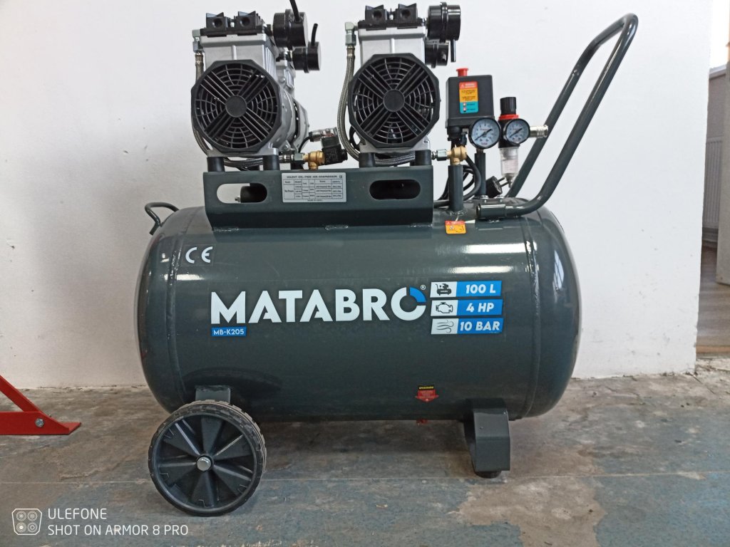 POUŽITO - Matabro MB-K205, Bezolejový kompresor 100l, 230V, 4 písty | 4000W POUŽITO - Matabro MB-K205, Bezolejový kompresor 100l, 230V, 4 písty | 4000W
