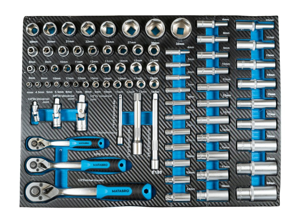 Kvalitní nástroje z CrV oceli: Každý kus nářadí v tomto vozíku je vyroben z vysoce odolné CrV oceli, což zaručuje spolehlivost při práci.