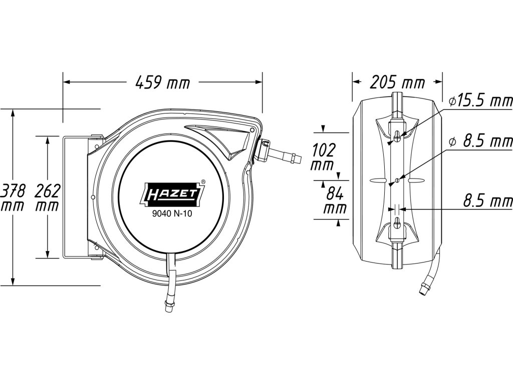HAZET 9040N-10, Naviják hadice 15 m | hybridní polymer, tlak 20 bar