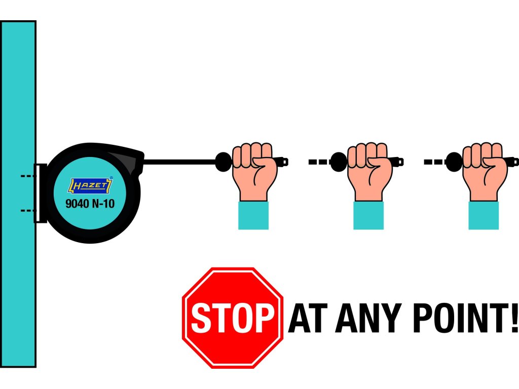 - Stop at any point umožňuje uživateli zastavit hadici přesně tam, kde je potřeba, bez nutnosti vracení celého navinutí.