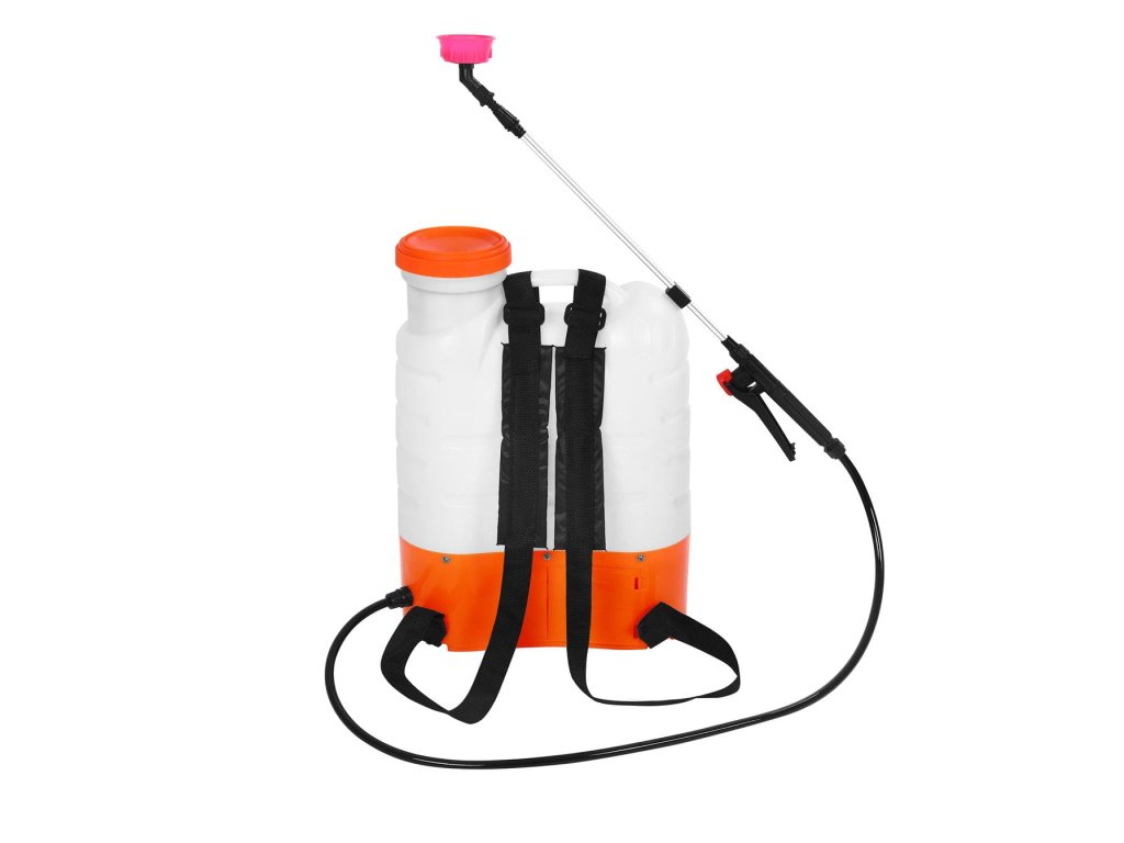 tlakový rozprašovač o objemu 8 l vhodný k postřiku rostlin a stromů na zahradě a v sadech nastavitelný popruh pro snazší manipulaci