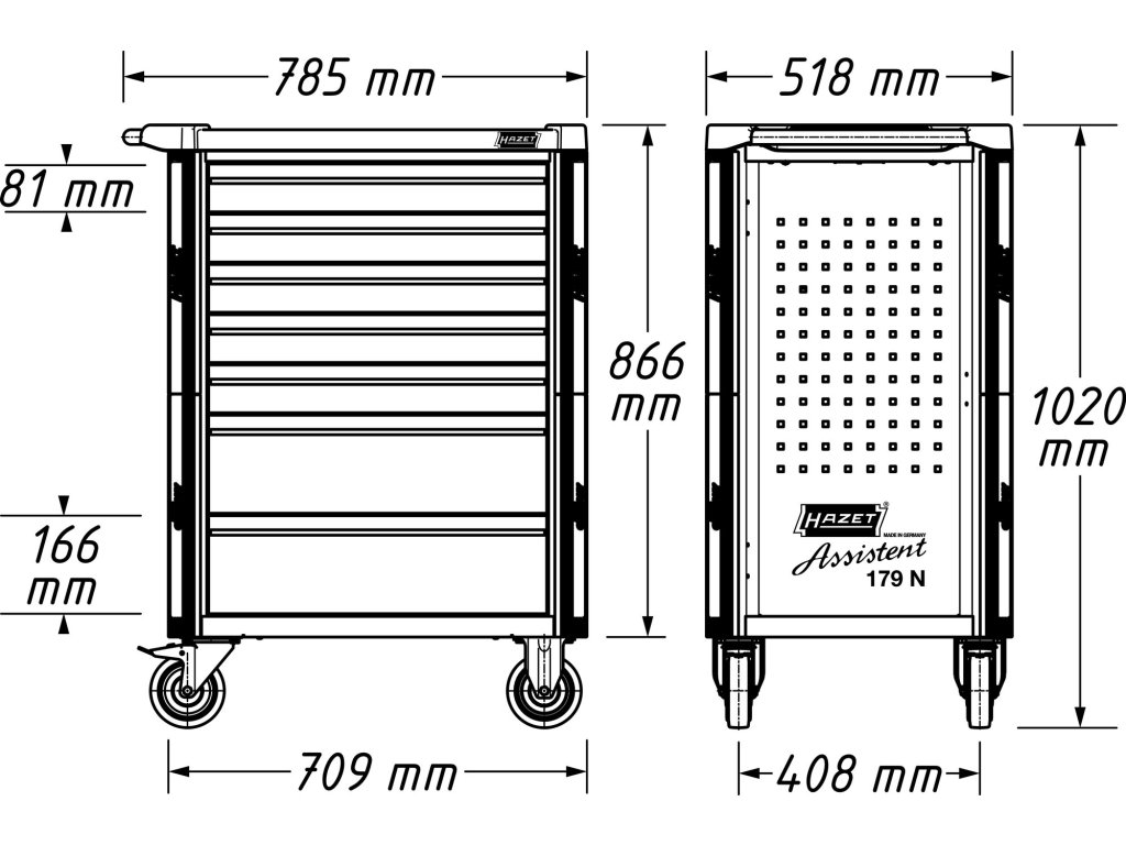 HAZET 179N-7-RAL9005, Dílenský vozík Asistent 179N | 785x518x1020 mm, 5 nízkých a 2 vysoké zásuvky, matně černý RAL 9005