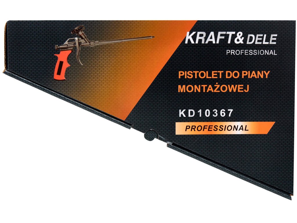 - Profesionální teflonová pistole na montážní pěnu značky Kraft&Dele, model KD10367, zajišťuje jednoduchou a precizní aplikaci polyuretanové pěny.