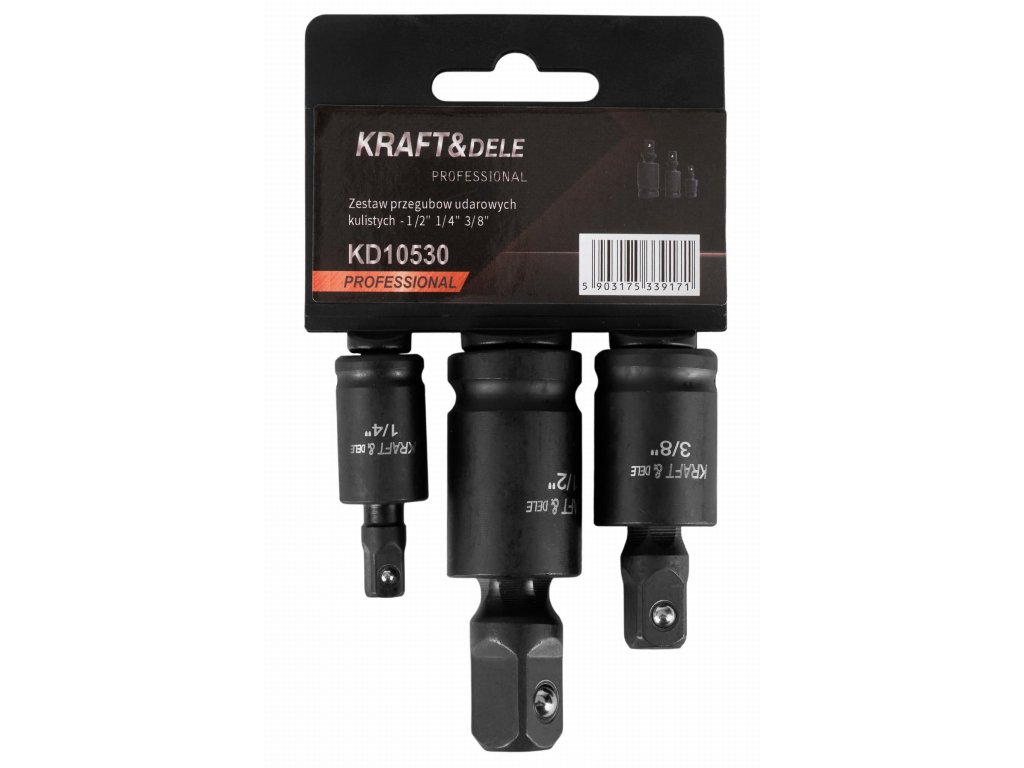 Kraft&Dele KD10530, Sada nárazových kulových kloubů | 1/2" 3/8" 1/4" chrom-molybdenová ocel