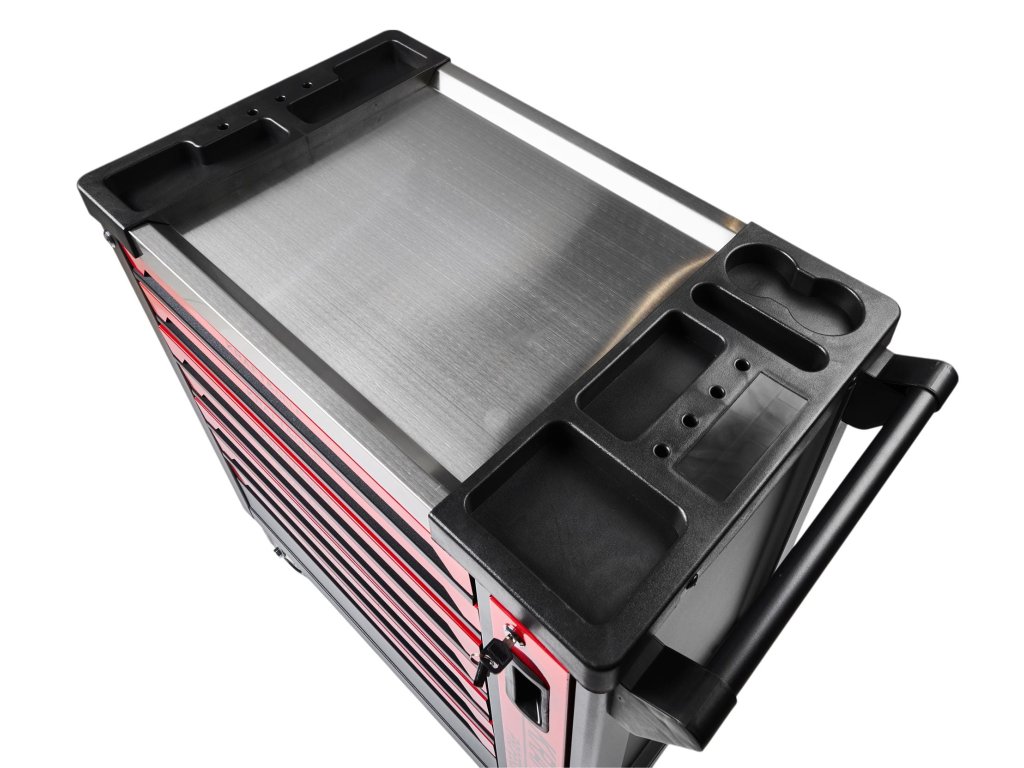 - Disponuje 9 prostornými zásuvkami s kuličkovým výsuvným mechanismem, které umožňují snadný přístup k nářadí.