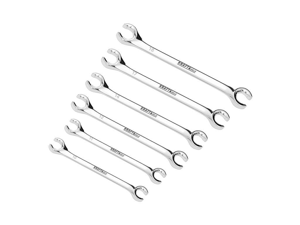 - Klíče s polootevřenými kroužky: 8x10, 9x11, 10x12, 13x14, 15x17, 16x18 mm.