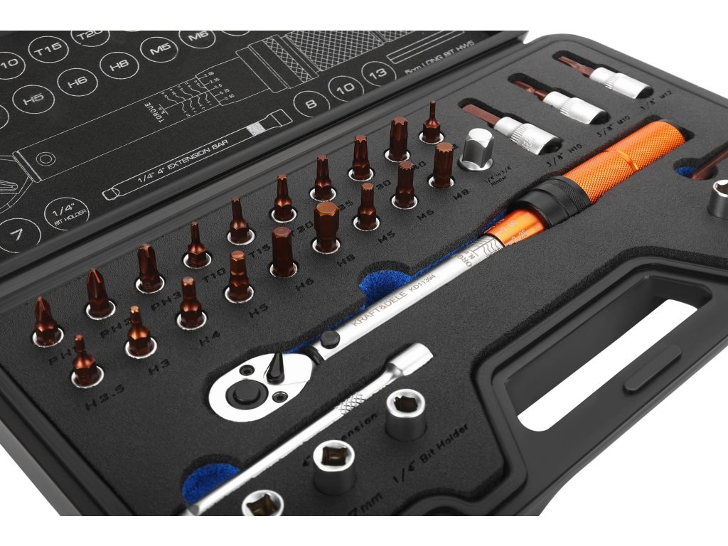 Kraft&Dele KD11394, Klíč dynamometrický 1/4" 5–25 Nm | 32dílná sada, plastový kufr, ergonomická rukojeť