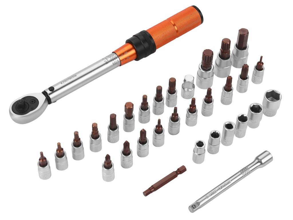- Precizní klíč dynamometrický s nastavitelným momentem 5–25 Nm.
