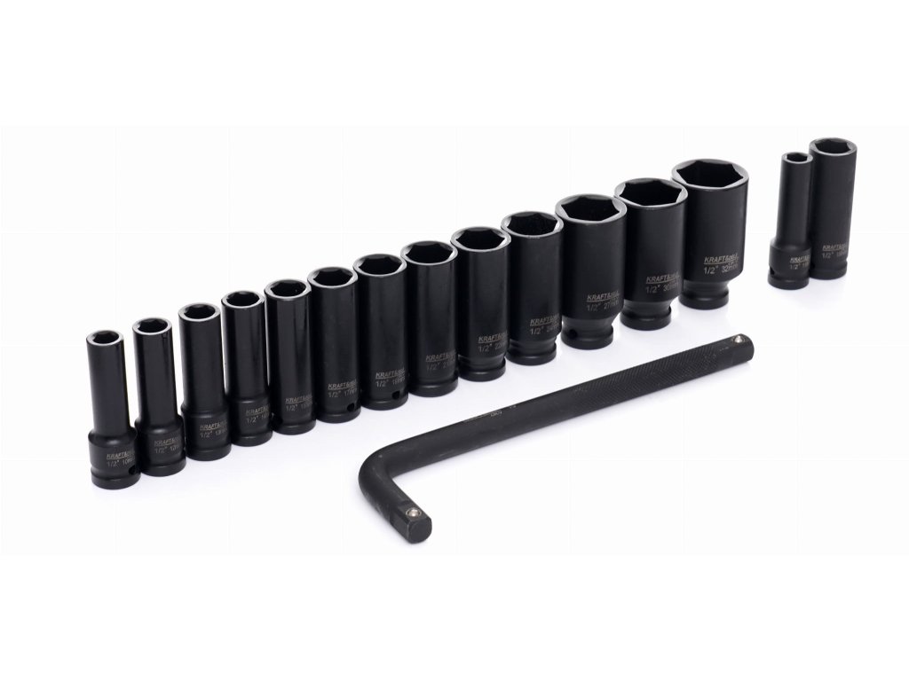 - Rázové hlavice 1/2" – 15 ks od velikosti 10 do 32 mm.