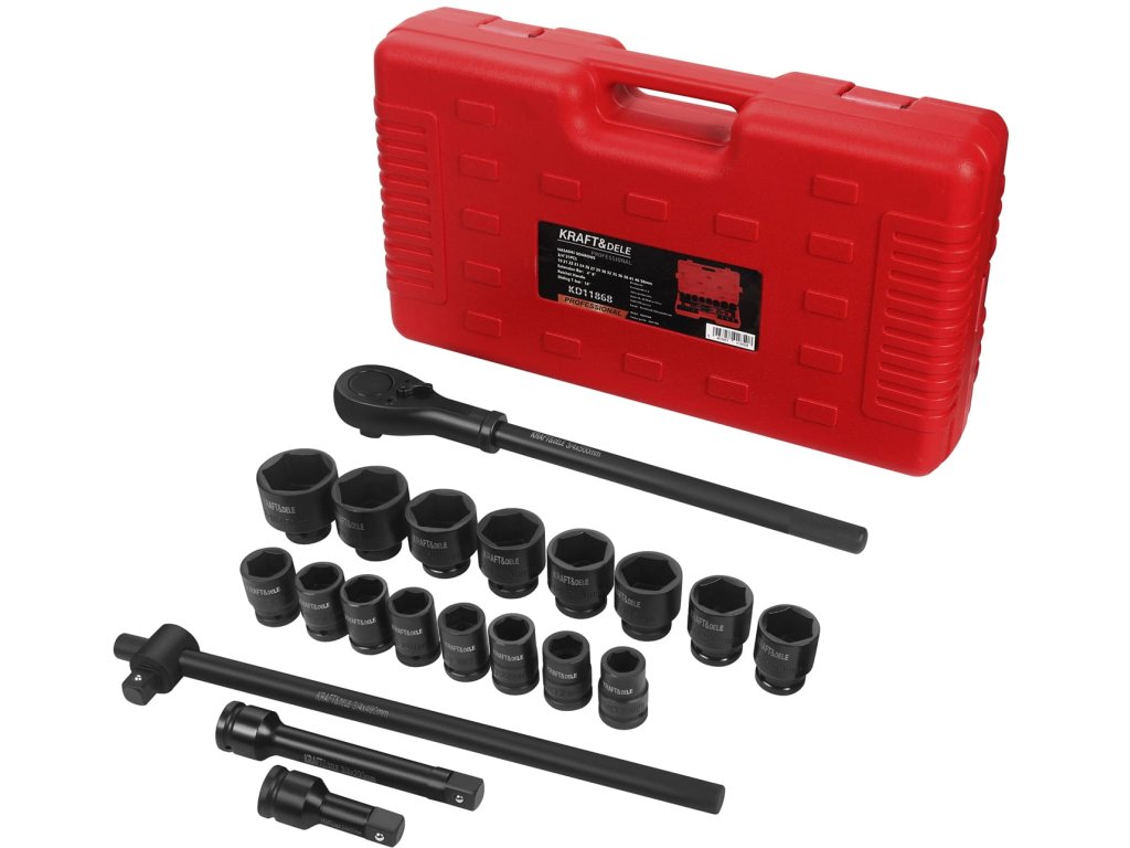 Kraft&Dele KD11868, Sada ráčny s nástavci 3/4" | 21 dílů, Cr-Mo ocel, 19–50 mm