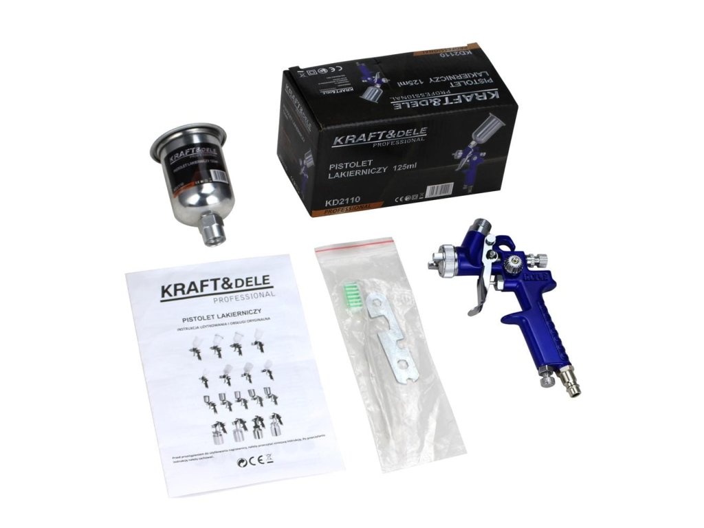 - Malířská pistole Kraft&Dele KD2110 s kapacitou 125 ml je určena pro natírání různých povrchů vodou ředitelnými laky, akrylovými základními nátěry, tmely i perleťovými laky.