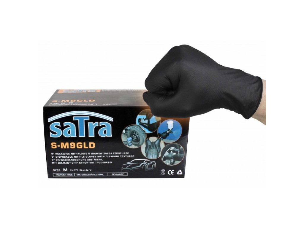 Vyberte si jednorázové nitrilové rukavice SATRA pro bezlatexovou ochranu, vysokou odolnost a komfortní nošení s výbornou přilnavostí díky diamantové textuře.