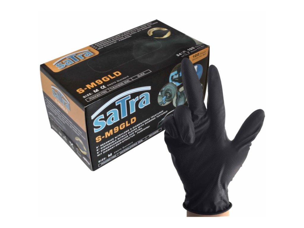 SATRA S-M9GLD, 9" jednorázové nitrilové rukavice s diamantovou texturou | bez latexu, vysoce odolné, zdravotnické použití---