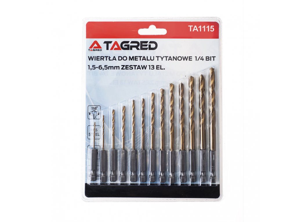Titanové vrtáky HSS 1,5 - 6,5mm do železa, sada 13ks, Tagred TA1033