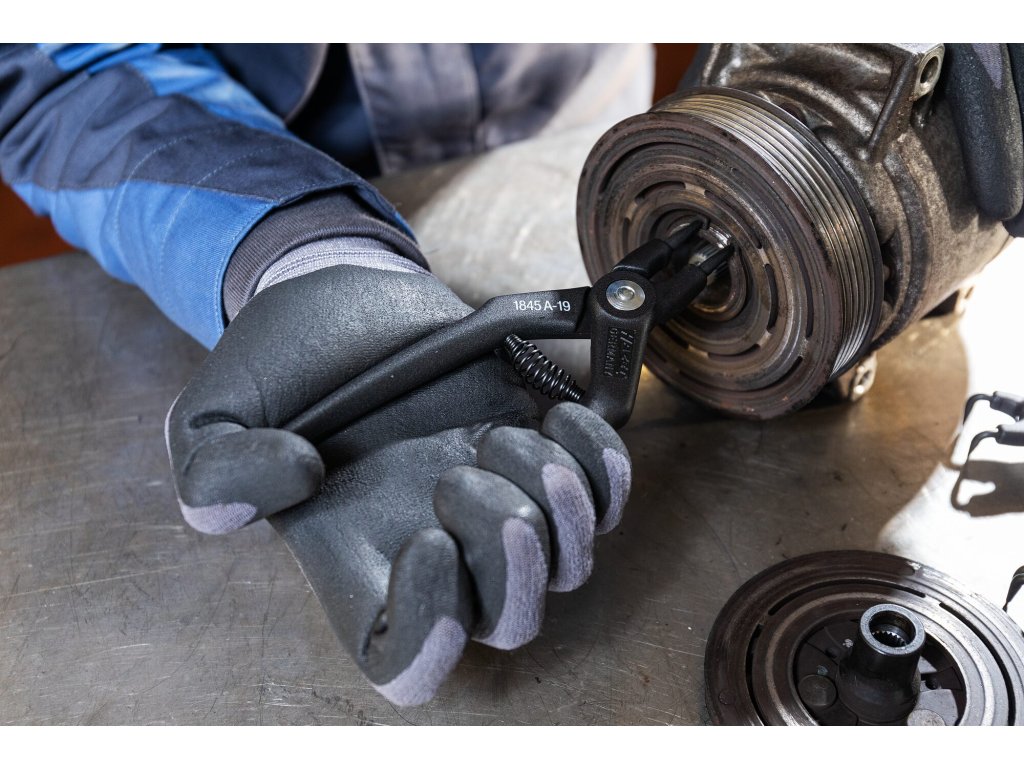 - Kleště na pojistné kroužky HAZET 1845A-3 o délce 140 mm.