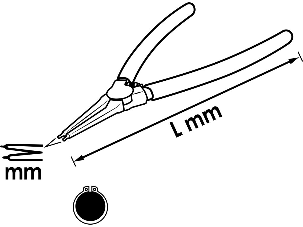 - 1× kleště na vnější pojistné kroužky, přímé provedení (tvar A)