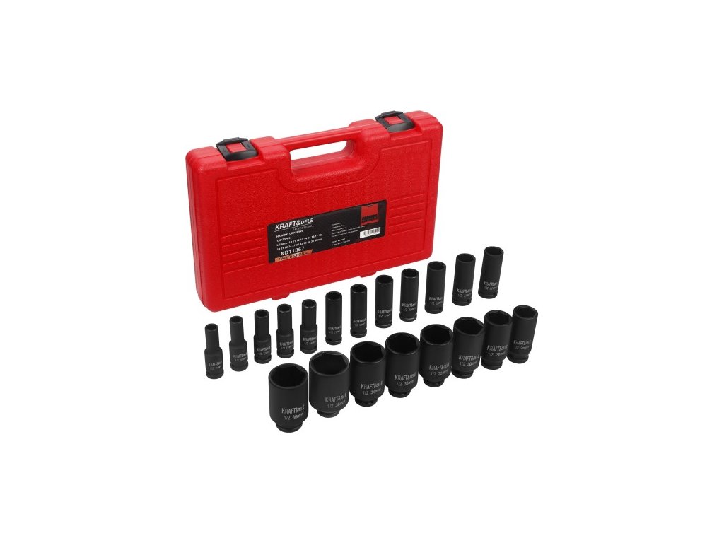 Kraft&Dele Nasadky udarove 1/2" Cr-Mo ocel 10–38 mm – sada pro elektrické a pneumatické klíče