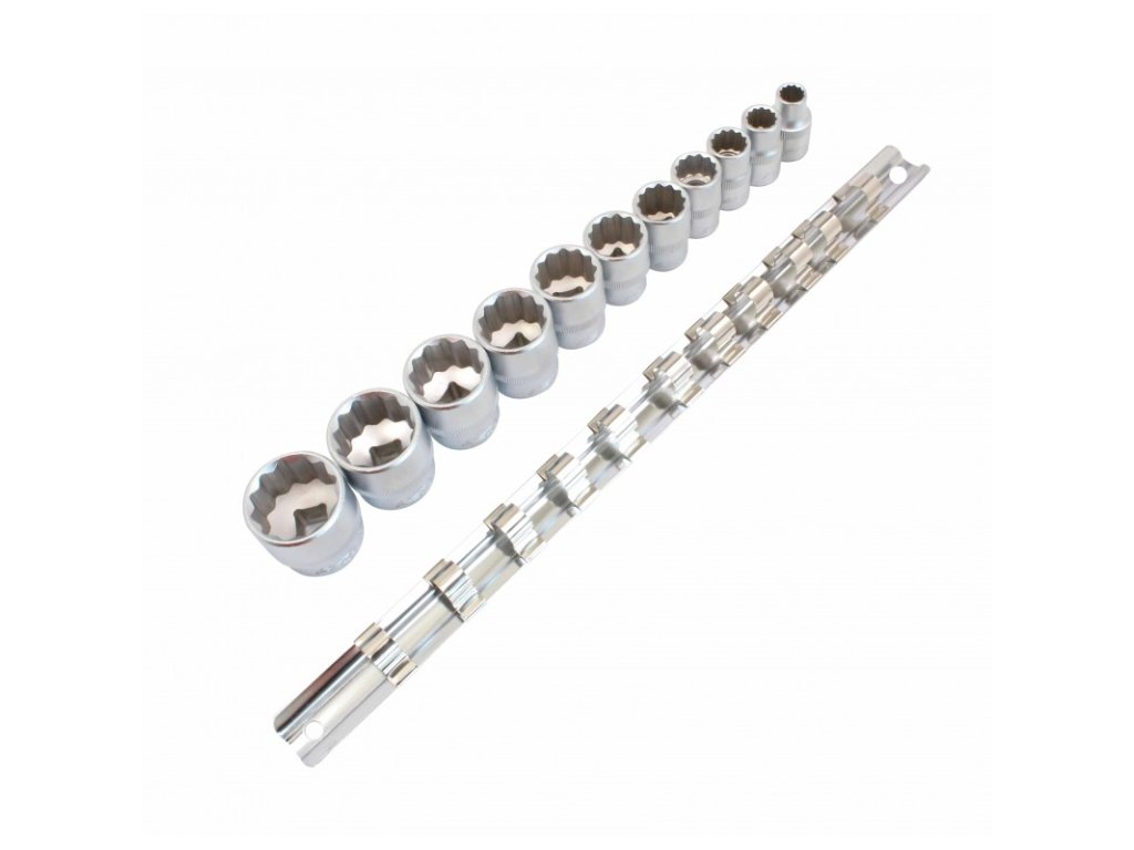 - Hlavice: 11 kusů krátkých nástrčných hlavic 3/8'' 12hranných imperial.