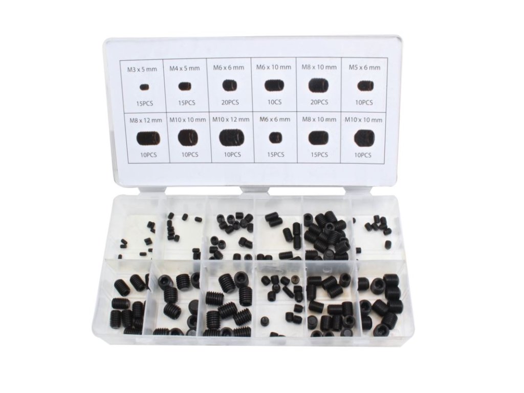 - Sada obsahuje : 160 kusů šroubů GRUB různých velikostí vhodných pro montážní a opravářské práce.