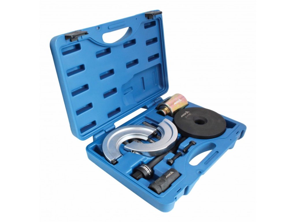 Sada nástrojů ASTA A-H190 je určena pro vyjmutí a montáž ložisek náboje kola vozidel skupiny VAG (Volkswagen, Audi, Škoda, Seat). Tento profesionální servisní nástroj usnadňuje a zrychluje práci při opravách nábojů kol, přičemž minimalizuje riziko poškození ložisek a dalších komponent.