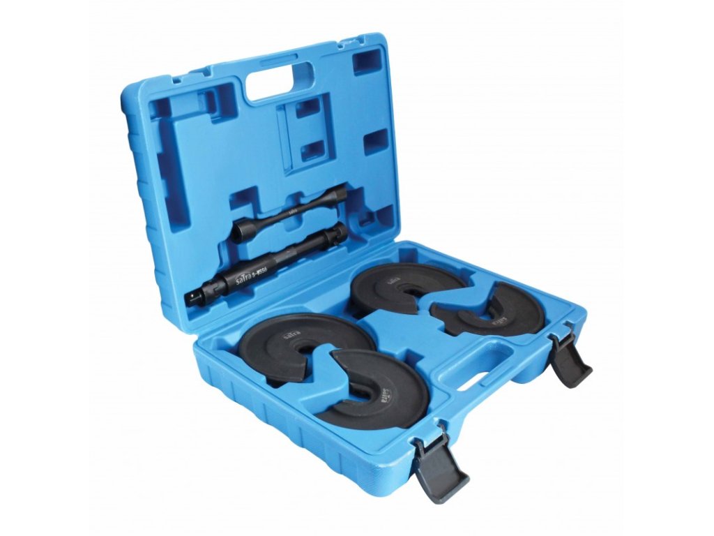 Kompresor vinuté pružiny pro vahadlo SATRA S-WSS6 je speciální nástroj určený pro bezpečnou a efektivní manipulaci s vinutými pružinami používanými u vahadel. Vysoká kvalita zpracování a robustní konstrukce umožňují spolehlivou práci i v náročných podmínkách profesionálních autoservisů a mechanických dílen.