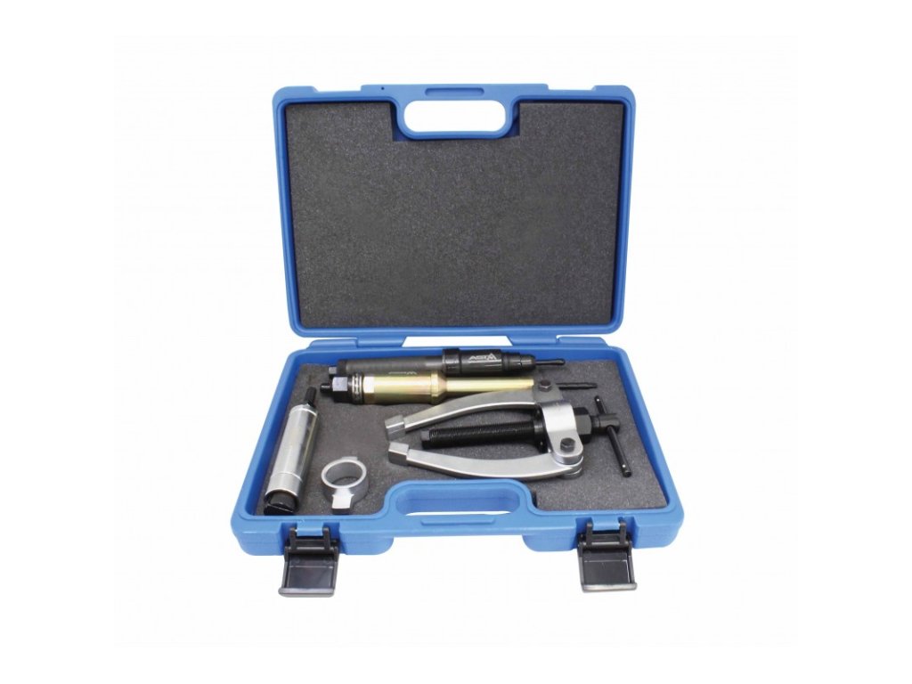 Přípravky na demontáž vstřikovačů Mercedes CDI. Obsahuje adaptéry M17x1,0, M27x1,0 a M12x1,75. Dvě reverzní kladiva o hmotnosti 1,75 kg a délce 350 mm. Součástí je kloub pro...
