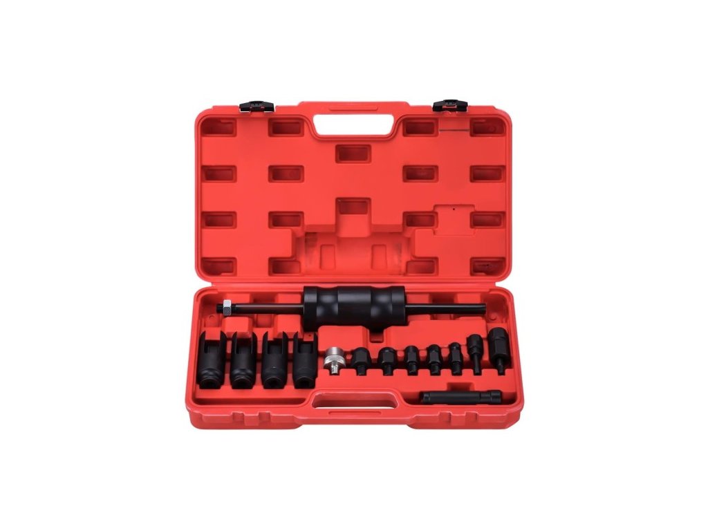 Přípravky na demontáž vstřikovačů Mercedes CDI. Obsahuje adaptéry M17x1,0, M27x1,0 a M12x1,75. Dvě reverzní kladiva o hmotnosti 1,75 kg a délce 350 mm. Součástí je kloub pro...