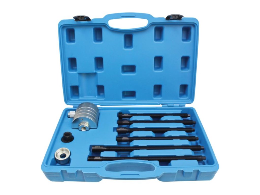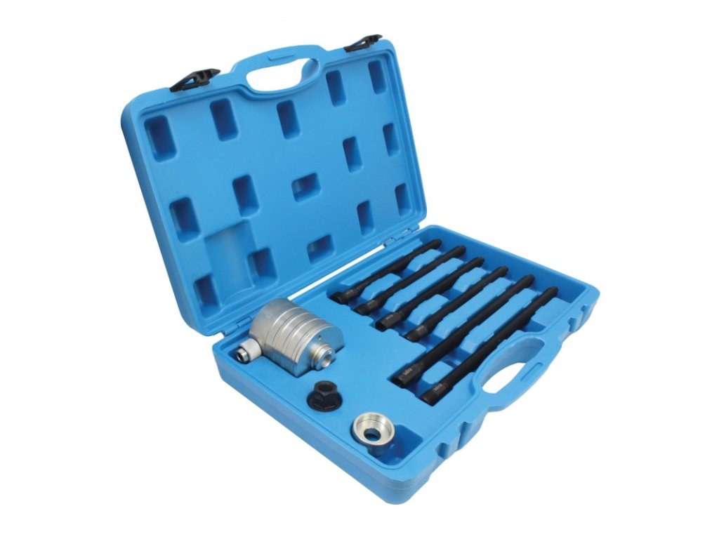 Přípravky na demontáž vstřikovačů Mercedes CDI. Obsahuje adaptéry M17x1,0, M27x1,0 a M12x1,75. Dvě reverzní kladiva o hmotnosti 1,75 kg a délce 350 mm. Součástí je kloub pro...