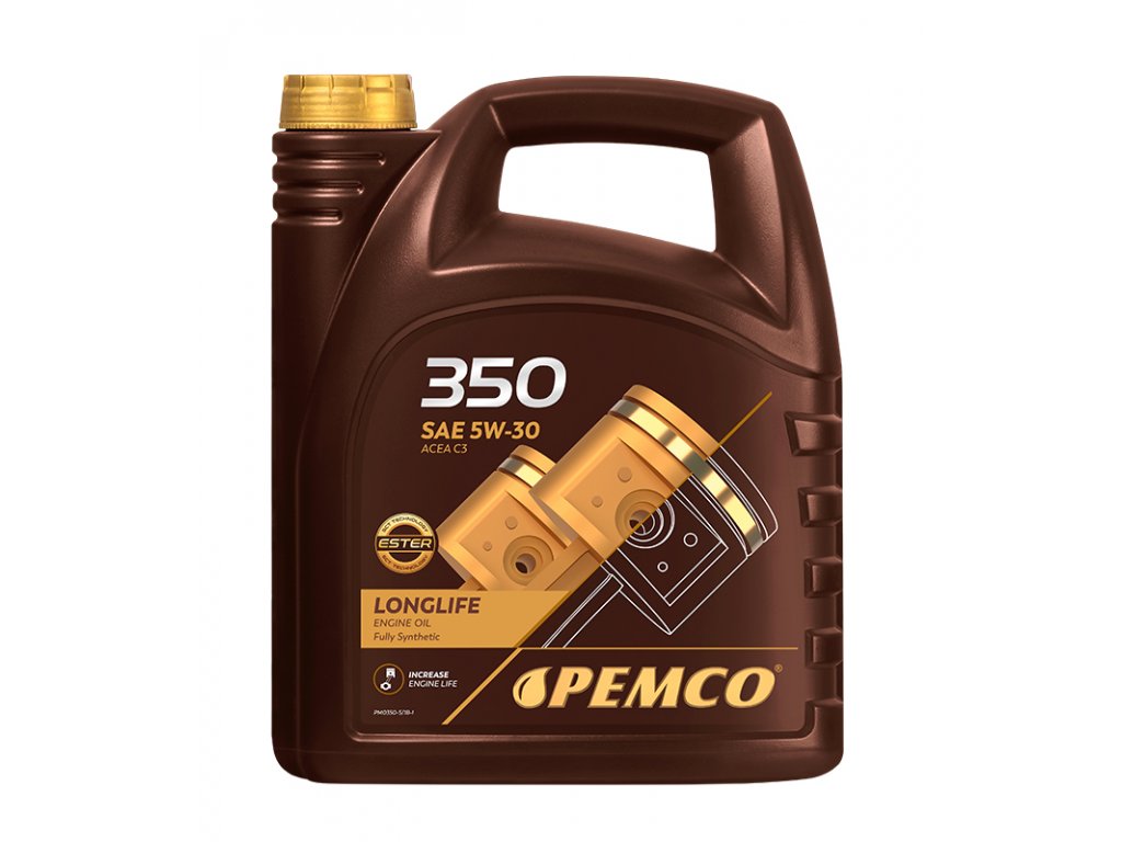 PEMCO 350 je syntetický Mid SAPS motorový olej na bázi PAO + estery pro moderní benzínové a naftové motory s přeplňováním i bez přeplňování, včetně PD (Pumpe-Duse). Olej je navržen na základě požadavků VW a DAIMLER. Díky obsaženým esterovým složkám má vynikající vlastnosti proti tření a opotřebení, což zajišťuje dlouhý a bezproblémový provoz. Kompatibilní se všemi systémy následné úpravy výfukových plynů, DPF, TWC, EGR a SCR. Vhodné pro motory využívající CNG a LPG.Doplňkové parametry