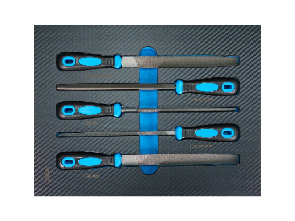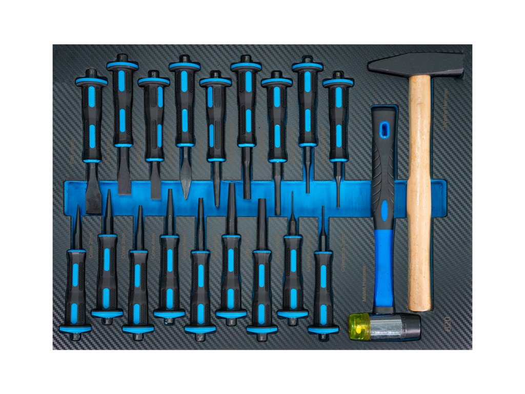 - Nářadí je pevně usazeno v pěnové výplni, která díky karbonovému povrchu zajišťuje moderní a stylový vzhled.