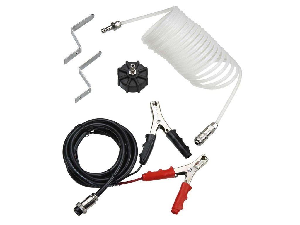 - Vybaveno manometrem, hadicemi a kabely k připojení 12V baterie