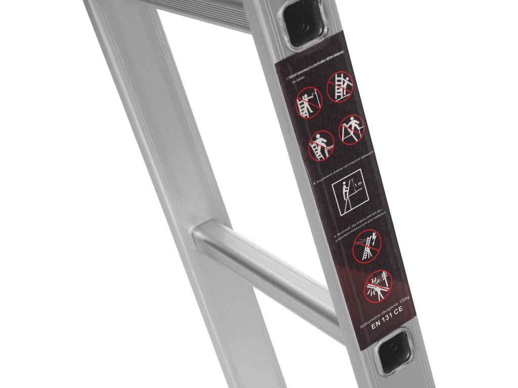 - Žebřík unese zatížení až 150 kg, což potvrzuje jeho pevnost a odolnost.