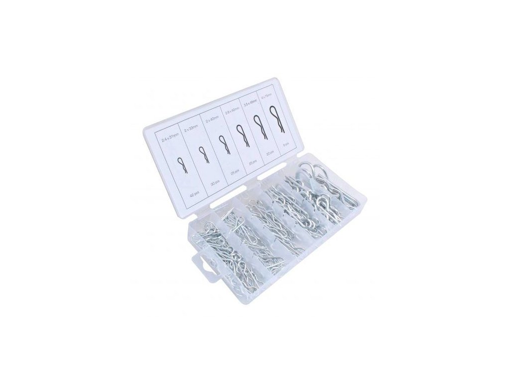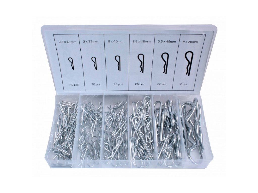 - Sada pružinových kolíků: 150 ks kolíků v různých průměrech 2,4; 3,0; 3,5; 4,0 mm.
