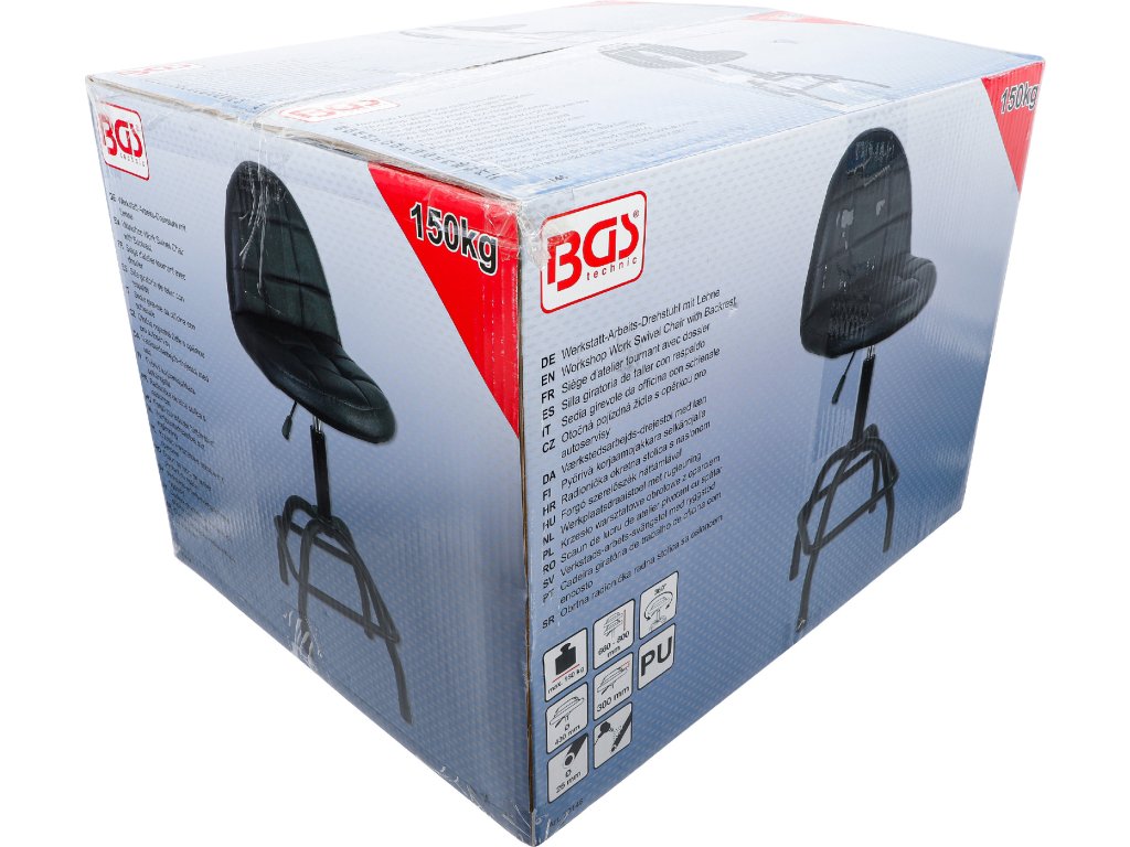 BGS 70146, Otočná pojízdná židle s opěrkou pro autoservisy | výškově nastavitelná